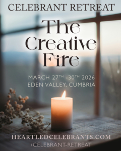 Our weekend retreat runs from 5pm Friday 27th March 2026 to 10am Monday 30th March. We deliberately keep our retreats small (max. 10), so that you can get to know each attendee. Places are available on a first-come first-served basis. www.heartledcelebrants.com/celebrant-retreats